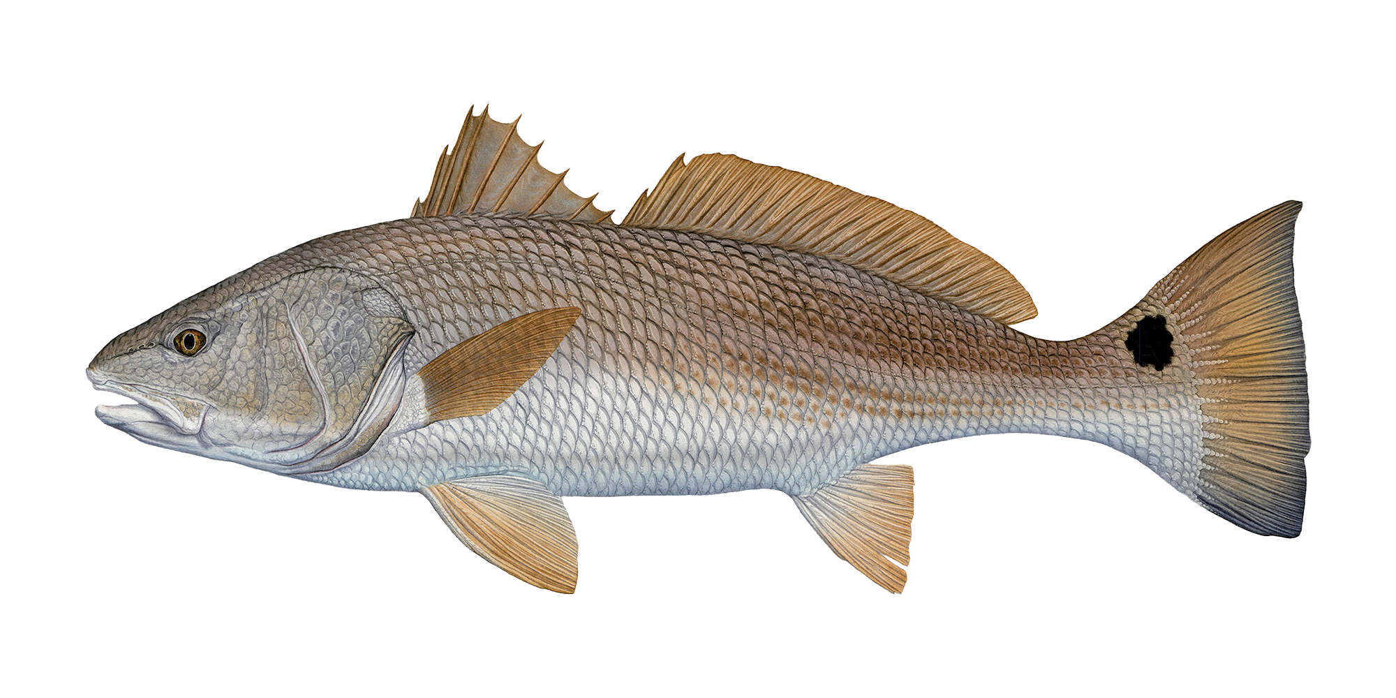 Redfish are tough fighters that’ll bend your rod and test your drag! With their copper-bronze color and signature tail spot, they roam the shallows, smashing shrimp and baitfish.